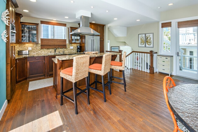 It has lovely ocean views from the combined living/dining/kitchen areas which expand out onto a huge wrap around entertaining deck. Still more impressive are the staggering panoramic views from the roof-top deck. Gourmet kitchen with energy efficient stainless-steel appliances. Each bedroom has its own bathroom. There is an ocean view from the romantic main suite with a fireplace and a balcony. High quality materials throughout such as exquisite, weathered wood floors, tall 10 ft ceilings, 8ft solid doors, tall floor moldings, stunning window casings and stair railings, gorgeous cabinetry, Caesarstone counters, travertine, glass tile accents, frameless shower doors, 4” plantation shutters. Frontier FIOS provided by the owner. The unit is Sonos ready and several rooms are hardwired for Ethernet. Owners to keep one closet in the unit, and one overhead rack and two shelves on standing rack in the garage for their personal belongings. Tenant is required to have the unit professionally cleaned on a bi-weekly basis at the tenants expense.