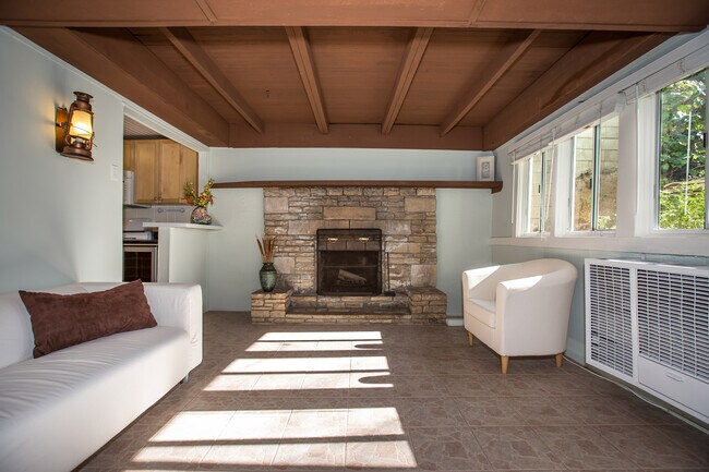 Absolutely charming home in a peaceful, retreat-like setting surrounded by trees, greenery, and stunning views. Excellent location just minutes from Beverly Hills, Century City, UCLA,... and a short drive to the Valley. It has everything you need, including a kitchen with granite countertops, microwave, stove, refrigerator and dishwasher. Although a studio, it has a private sleeping area, a walk-in closet, and a cozy wood-burning fireplace. It also has a washer/dryer, and built-in wine cooler.