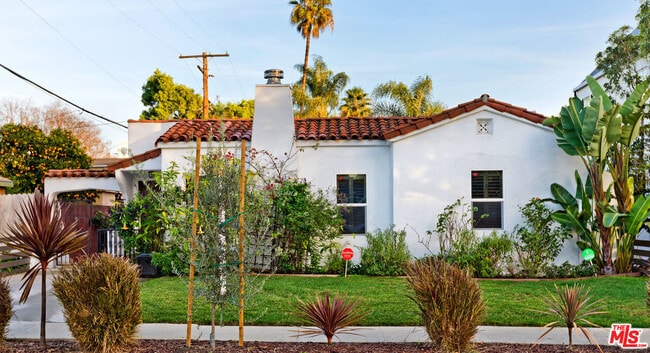 Stunning Spanish-style home bursting with character. This well-dressed 2 bed/2 bath comprised with authentic details. Hardwood floors, Spanish tiles imbedded in curved archways, exposed ceiling beams and romantic fireplace in living room. The formal dining room leads to the stylish kitchen that offers a nice contrast of classic stainless steel appliances including oven, range, refrigerator, dish washer and temperature controlled wine fridge all set against the backdrop of custom cabinetry and a brightly tiled back splash. Master bedroom with charming backyard view and large closet w/barn doors. Lovely bathroom in main house featuring deep tub & shower. Whimsical backyard enchanted by the stone pathway that weaves through the manicured lawn and toward mature fruit trees. All inclusive with a garden, seating area and gas fire pit. Nestled among the backyard greenery is a completely private guest house that includes a spacious bedroom/office and bath.