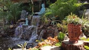 Pond with waterfalls and tropical landscaping